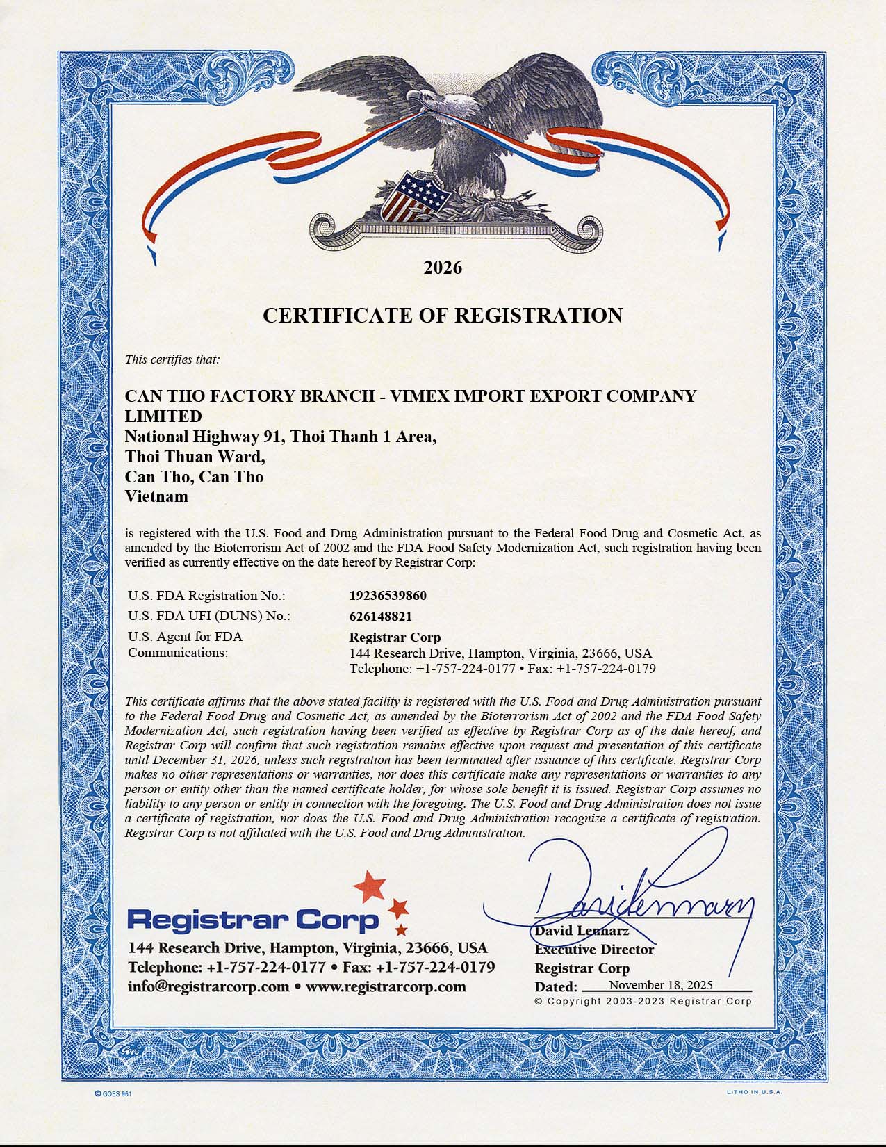 Operating a network of rice mills across the Mekong Delta — Vietnam’s agricultural heartland — VIMEX achieves an annual export capacity exceeding 120,000 metric tons. Our facilities are equipped to meet rigorous international standards, backed by an internal, independent quality control system for each product line. This enables us to build long-term, reliable partnerships with clients around the world.