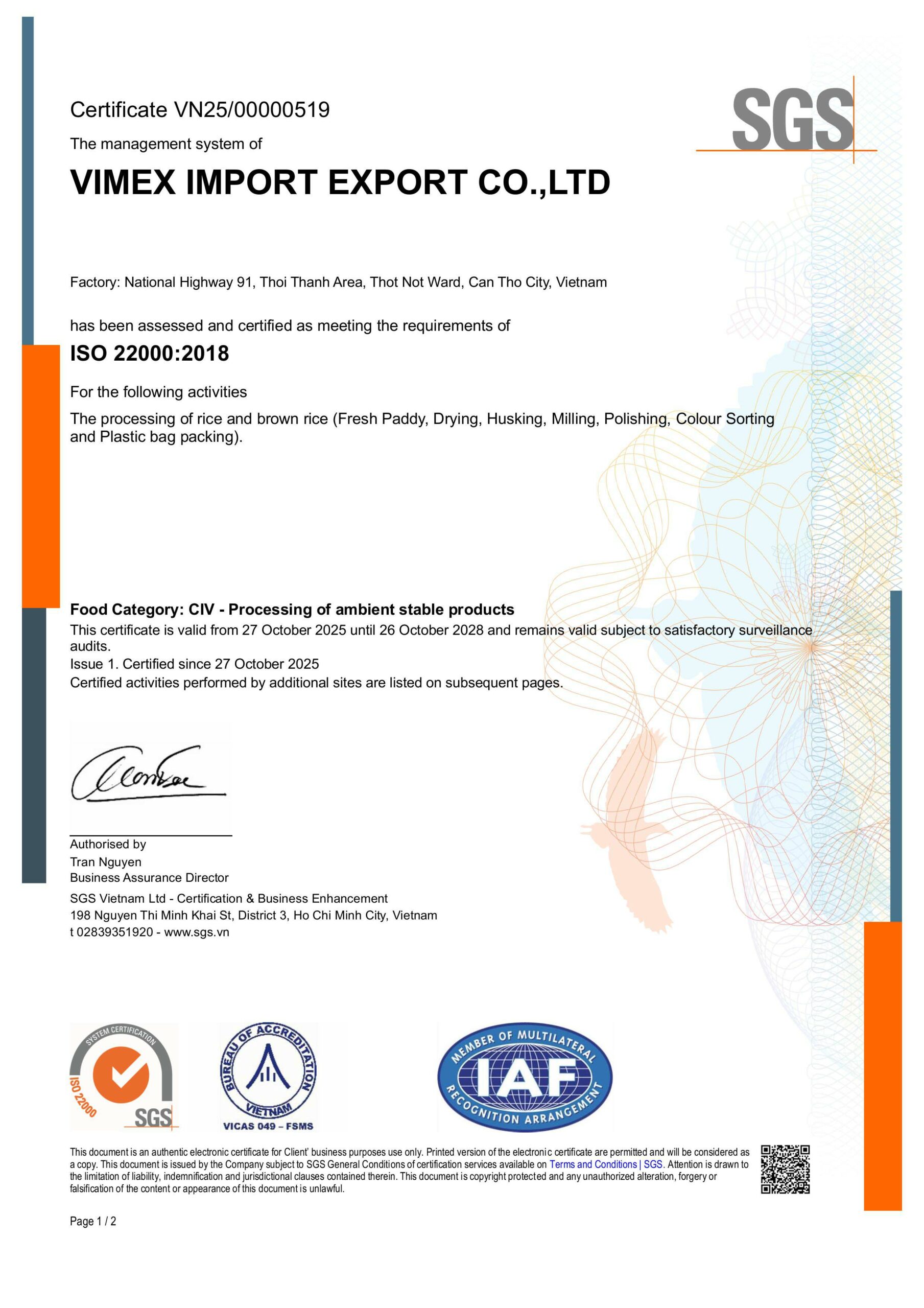 Vimex Import Export Co Ltd was established in 2012 with a clear mission: to deliver premium Vietnamese Rice products directly to international markets. With headquarter in Vietnam, we are strategically positioned to manage and coordinate a robust global distribution network, ensuring consistent supply, exceptional quality, and competitive pricing.